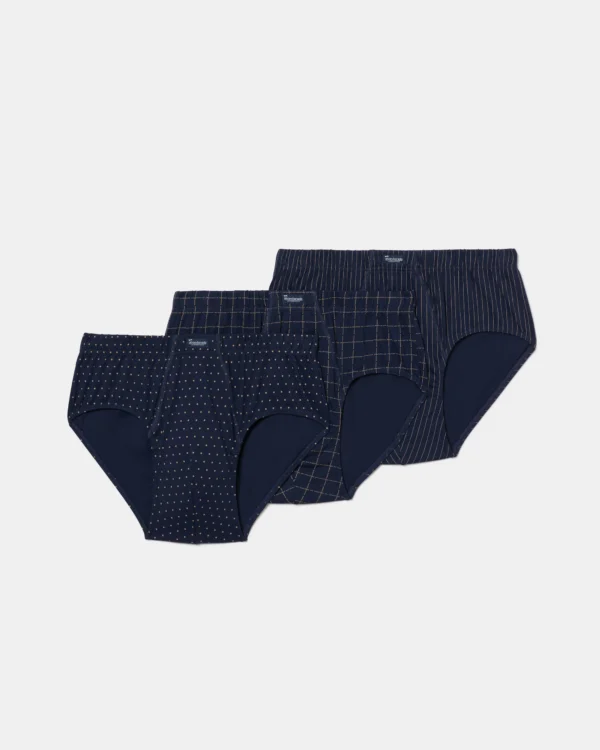 Este pack de 3 calzoncillos slips abiertos en gris geo oscuro está confeccionado en 100% algodón, ofreciendo una suavidad y confort excepcionales. Con un patrón clásico y un diseño masculino, los calzoncillos presentan un estampado microestampado elegante y sobrio. La cinturilla con goma recubierta garantiza un ajuste seguro, y el tejido de punto liso proporciona transpirabilidad, manteniéndote seco durante todo el día. La apertura en la parte frontal asegura comodidad extra.