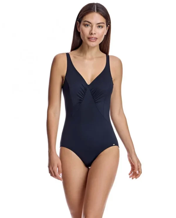 Bañador clásico corte pico tejido en liso color negro. Tejido de vanguardia con un alto poder moldeador, con una alta resistencia al cloro, cremas y aceites bronceadores y excelentes propiedades de absorción de la humedad.