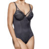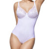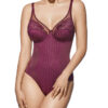 Body con aros que combina un tejido de franjas con la copa bordada en tul con encaje.