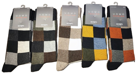 Calcetín Sondrio de Scopri, tejido en punto fino con dibujo geométrico tipo rombo discreto. Diseñado para un look clásico y confortable. Fabricado con algodón peinado de alta calidad, poliamida y elastano para un ajuste anatómico y buena transpirabilidad. Puño elástico antipresión y costuras planas que evitan roces. Ideal para uso diario o vestir, con buena resistencia al lavado y conservación del color.