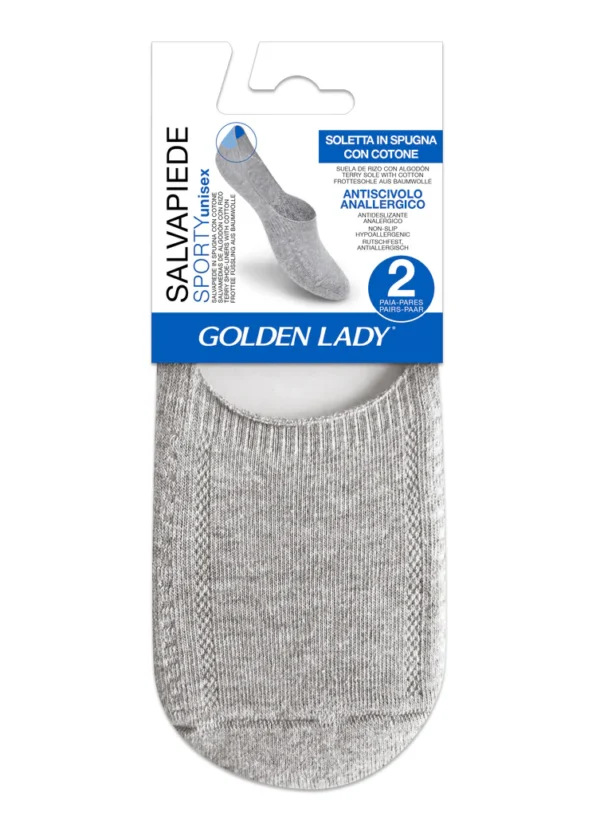 Pack de 2 calcetines invisibles Golden Lady, con silicona en el talón para un ajuste seguro que no se desliza. Confeccionados en rizo de algodón, ayudan a absorber el sudor y aportar mayor confort durante todo el día. Ideales para zapatillas y calzado bajo.