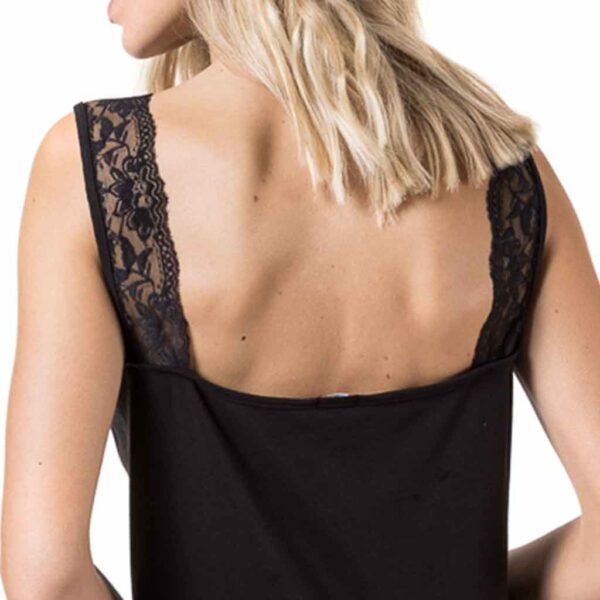 Camiseta interior mujer tirante sport con blonda, confeccionada en tejido bielástico, tiene una perfecta adherencia al cuerpo, muy confortable y duradera. Es un prenda que se puede utilizar durane todo el año.