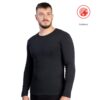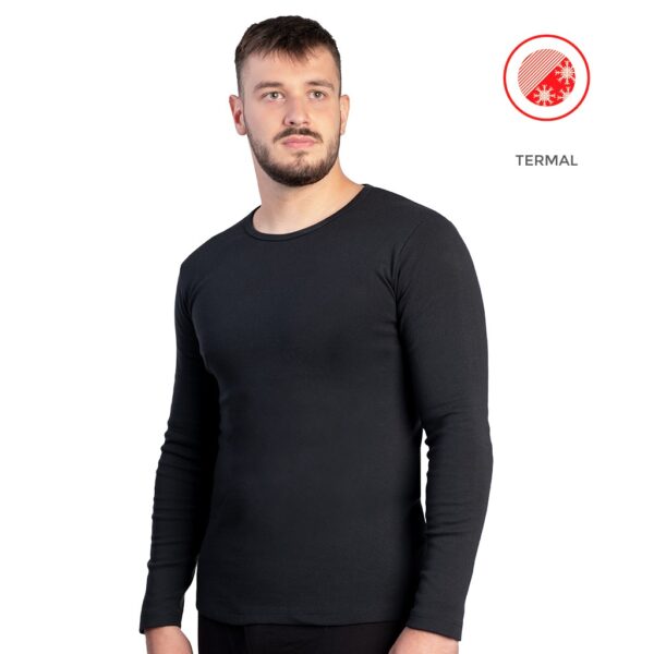 Nueva camiseta termal para hombre, confeccionada en grueso tejido 1×1 de algodón-poliéster, con un porcentaje de elastano y en fino canale 1×1 que le confiere la adaptabilidad perfecta. Con interior de suave afelpado que retiene el calor.