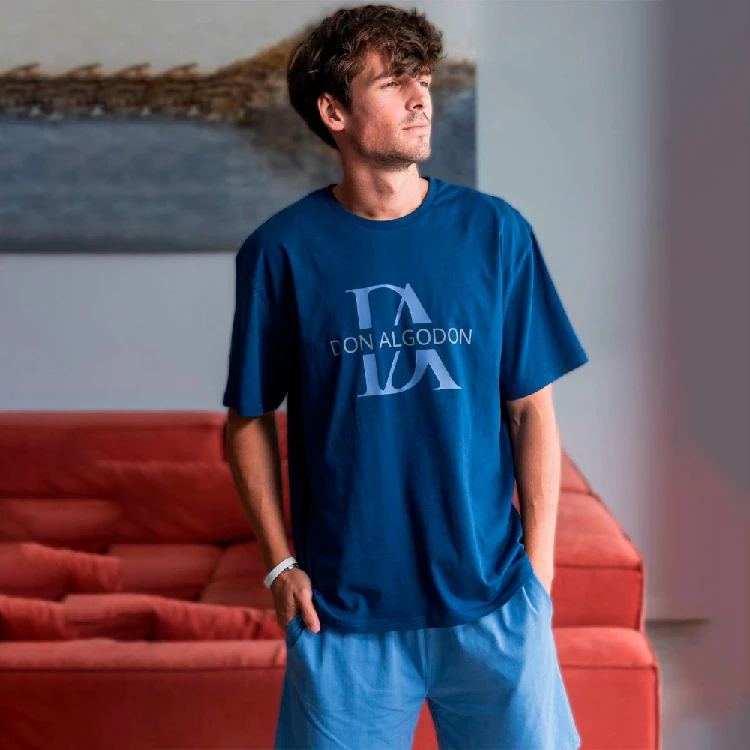 Pijama Hombre Don Algodón ,Camiseta De Manga Corta Y Cuello Redondo Con Estampado En El Pecho. Pantalón Corto Básico Con Bolsillos En Los Laterales.
