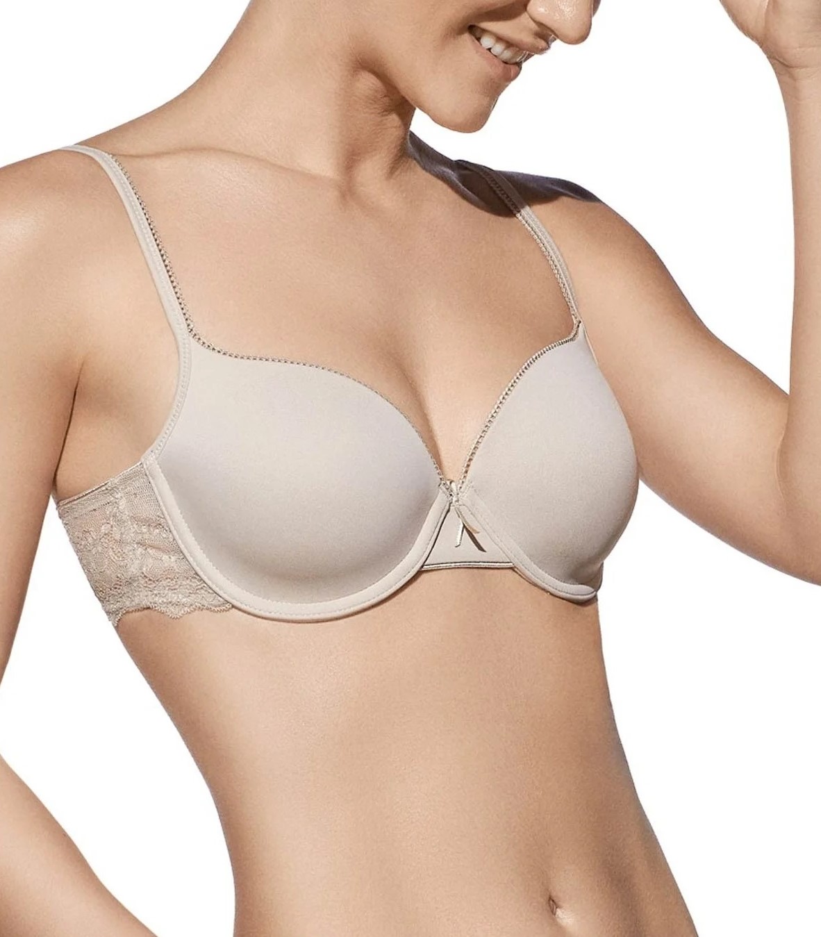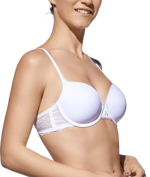 Sujetador de microfibra con aros y copa de relleno con detalle de encaje en la espalda.