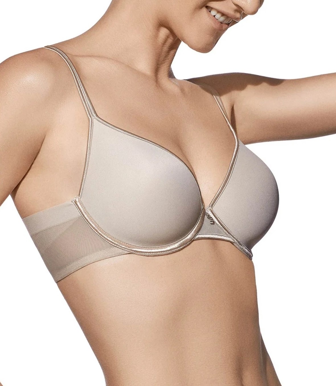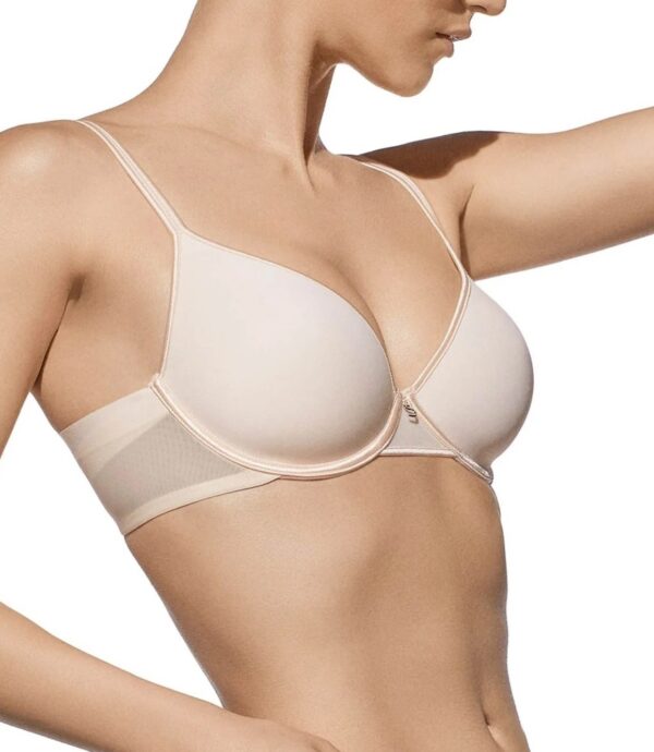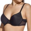 Sujetador con aros y copa de relleno, fabricado en microfibra. Elegante y cómodo cruce de tules en la espalda. Ideal para minimizar imperfecciones.