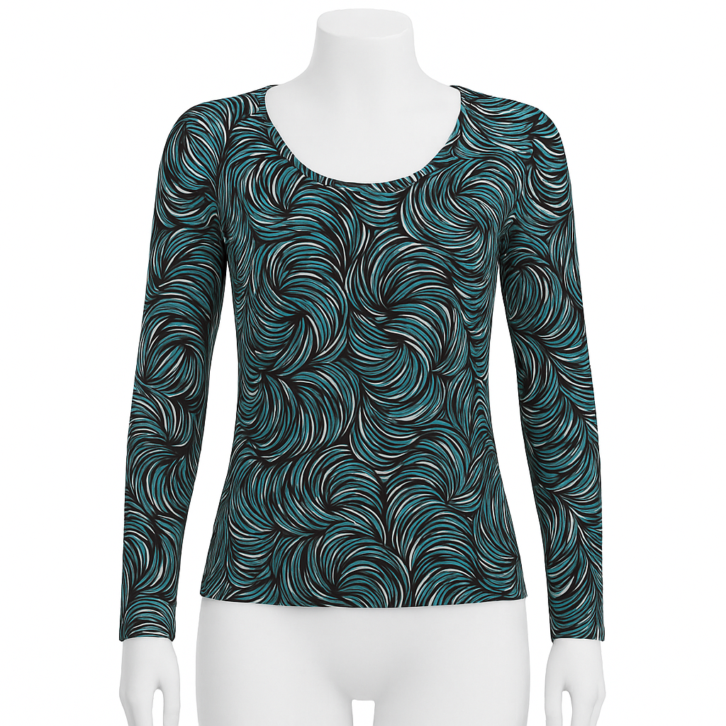 Suéter con estampado geométrico en tonos tierra y azules, ideal para un look casual con estilo. Confeccionado en 72% poliéster, 25% viscosa y 3% elastano, suave al tacto y con ajuste cómodo.