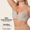 Sujetador con alto cubrimiento en copas, sisa y espalda. Aro interno para un push up suave.Ideal para pecho mediano, grande y muy grande.Copas fijas suaves y livianas (sin push up ni relleno incorporado).Capa interna de material de compresión PowerSlim en la base de las copas y la sisa, para disimular las mollitas.Espalda ancha con doble capa de tela, que da una apariencia de una espalda más estilizada. Suaves varillas laterales para evitar que se enrolle.Tirantes graduables con broches delanteros, para uso cruzado.Broches de 3 ganchos y 4 niveles de ajuste.Producido de manera sostenible en Colombia, bajo prácticas laborales justas.Composición: 87% poliamida, 13% elastano. Composición forro: 87% poliamida, 13% elastano.